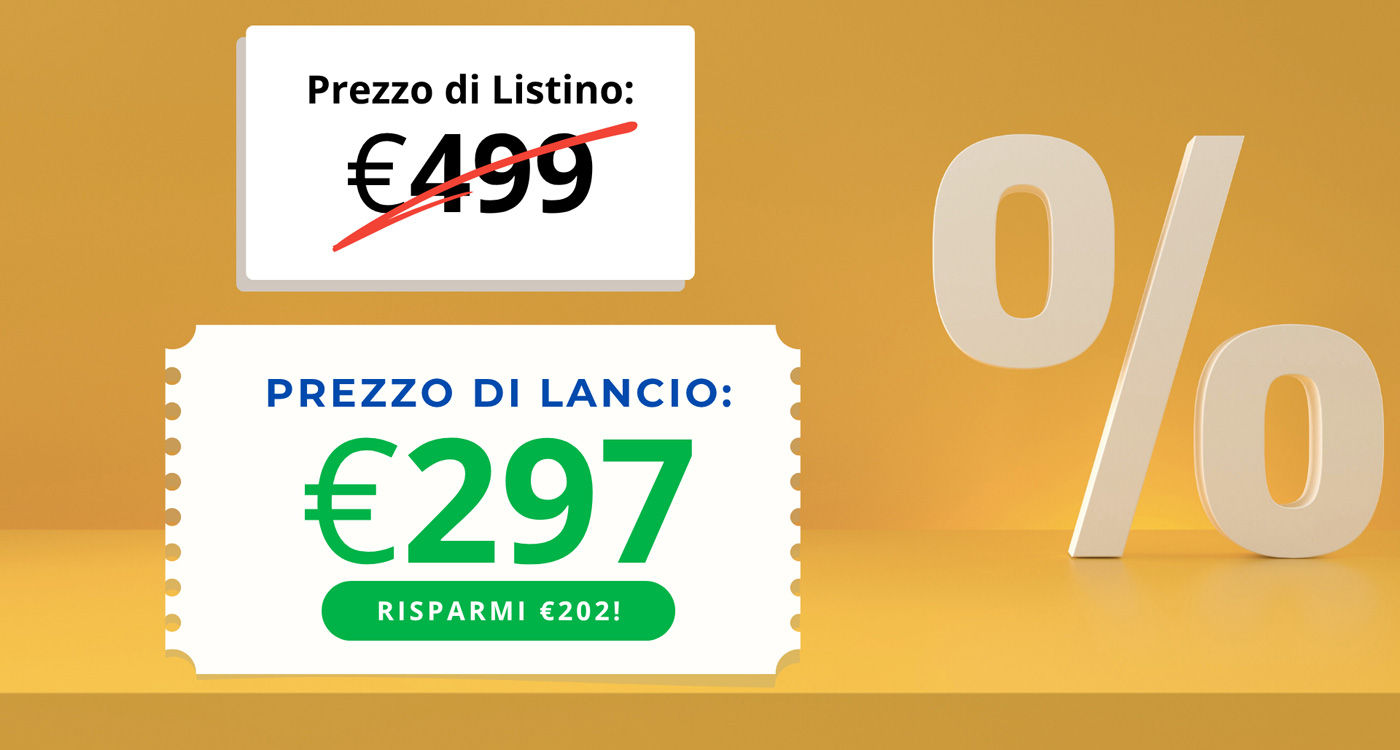 In segno di fiducia nel corso, oggi non pagherai €499, ma puoi accedere a tutti gli strumenti a soli: